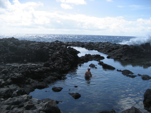 It is a 400 feet hike down the lava to the very inviting pools.