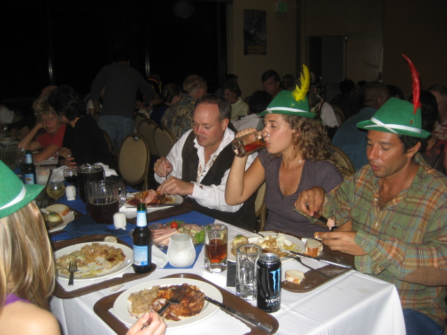 We eat huge amounts of traditional hearty fare such as Hendl (chicken), Schweinsbraten (roast pork), Schweinshaxe (ham hock), Steckerlfisch (grilled fish on a stick), Würstl (sausages) along with Brezn (Pretzel), Knödel (potato or bread dumplings), Kasspatzn (cheese noodles), Reiberdatschi (potato pancakes), Sauerkraut or Blaukraut (red cabbage) along with such Bavarian delicacies as Obatzda (a spiced cheese-butter spread) and Weisswurst (a white sausage). |