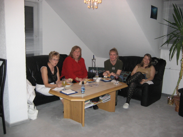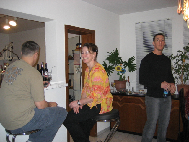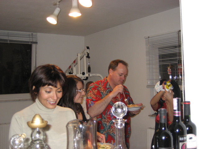 On the red shirt is Sigii, She made the meet balls pasta sauce & on Black & white is Debby's Mom who surplices' us with a giant bowties pasta dish